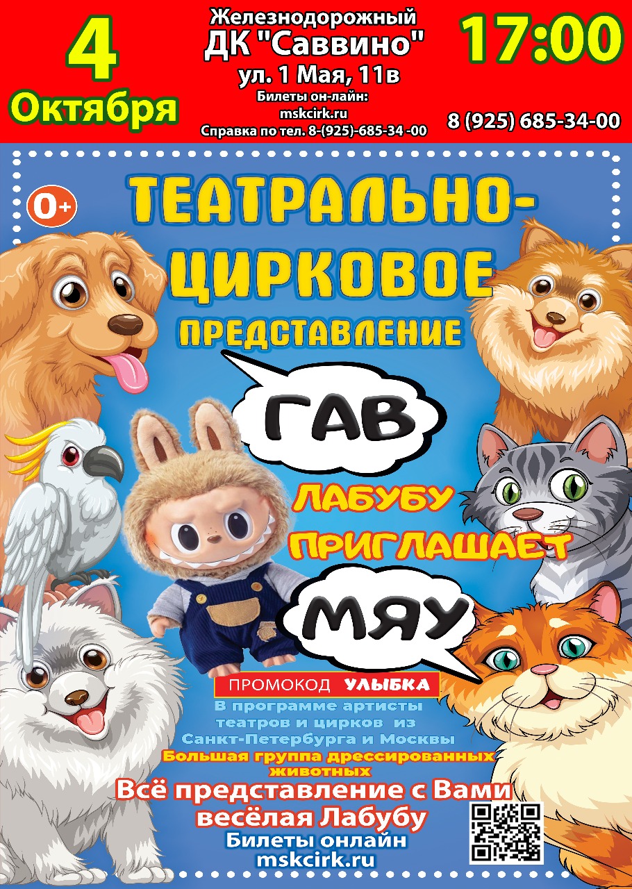 4 октября в 17.00 В программе Московского цирка « Гав- мяу» зрители увидят блистательную команда усато- мяукающих талантов. Слаженная работа этой редкой бенгальской Команды под руководством блистательного дрессировщика….. покоряет сердца с первых мгновений. Веселый номер « Разносчица пиццы» и её свита восхитительные добряки пуделя готовы повиноваться по взмаху волшебного жезла своей хозяйки - прыгать через барьеры, кувыркаться, танцевать на задних лапах. Невероятная красота и грация попугаев Ара, Какаду и Жако дорисовывают в воображении юных зрителей сказку со счастливым концом. Зрители увидят настоящее взаимопонимание и любовь между животными и человеком. Зрелищные номера оригинальных жанров: ошеломляющий антипод. Эквилибрист призёр Монте-Карло, выполняя сложнейшие элементы заставляет замирать зал от волнения и восторга. Высочайшее мастерство артистов иллюзионистов работающих в жанре трансформации создаст у зрителя романтическую атмосферу. Добрый коктейль юмора и артистизма добавит любимец публики смешливый клоун . Адреналин, молодость , динамика, талант , визитная карточка участников программы. До встречи на нашем представлении.