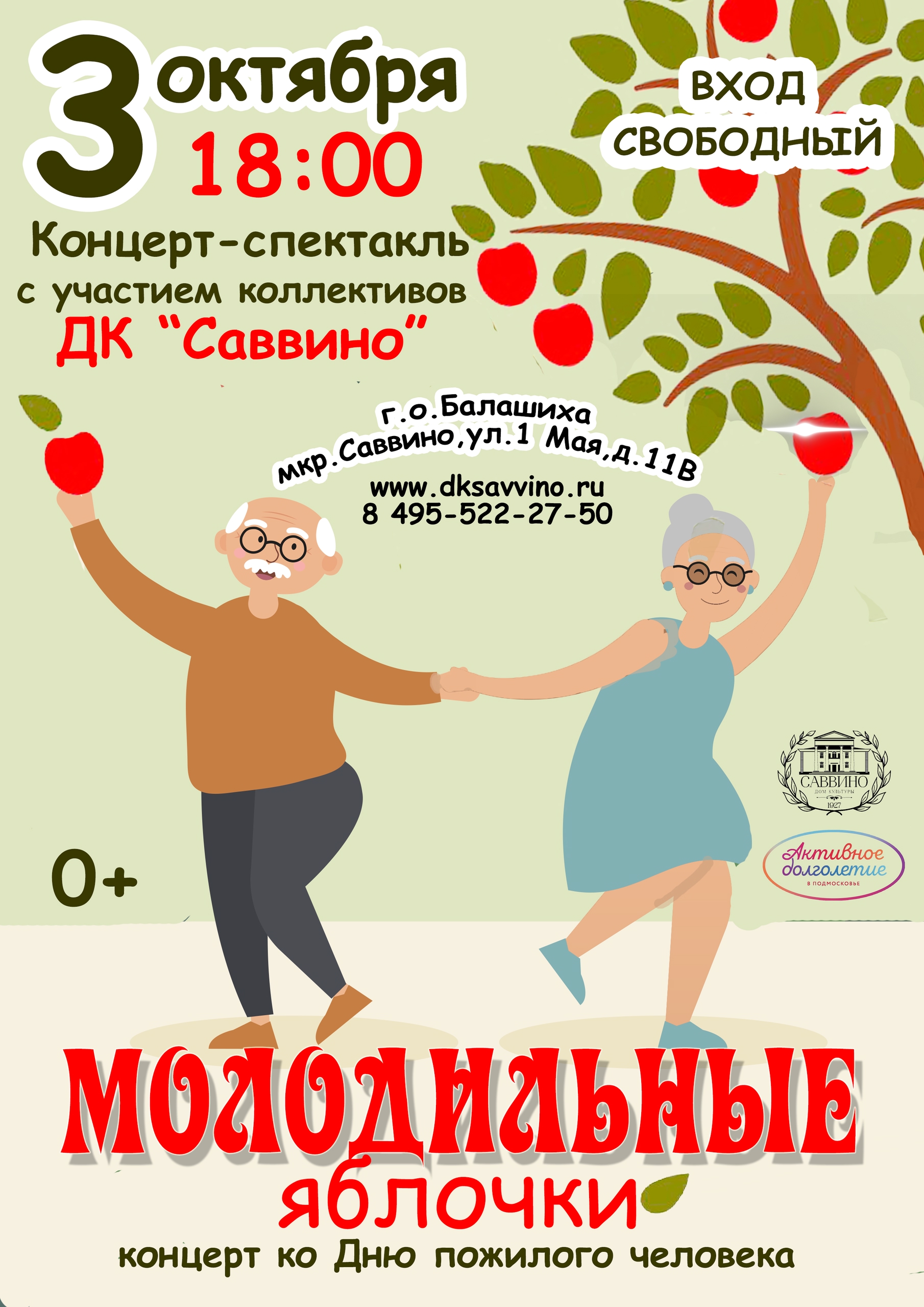 🎤Приглашаем вас на концерт-спектакль «Молодильные яблочки» с участием творческих коллективов ДК «Саввино»! Мероприятие посвящено Дню пожилого человека и пройдёт в тёплой и дружеской атмосфере.