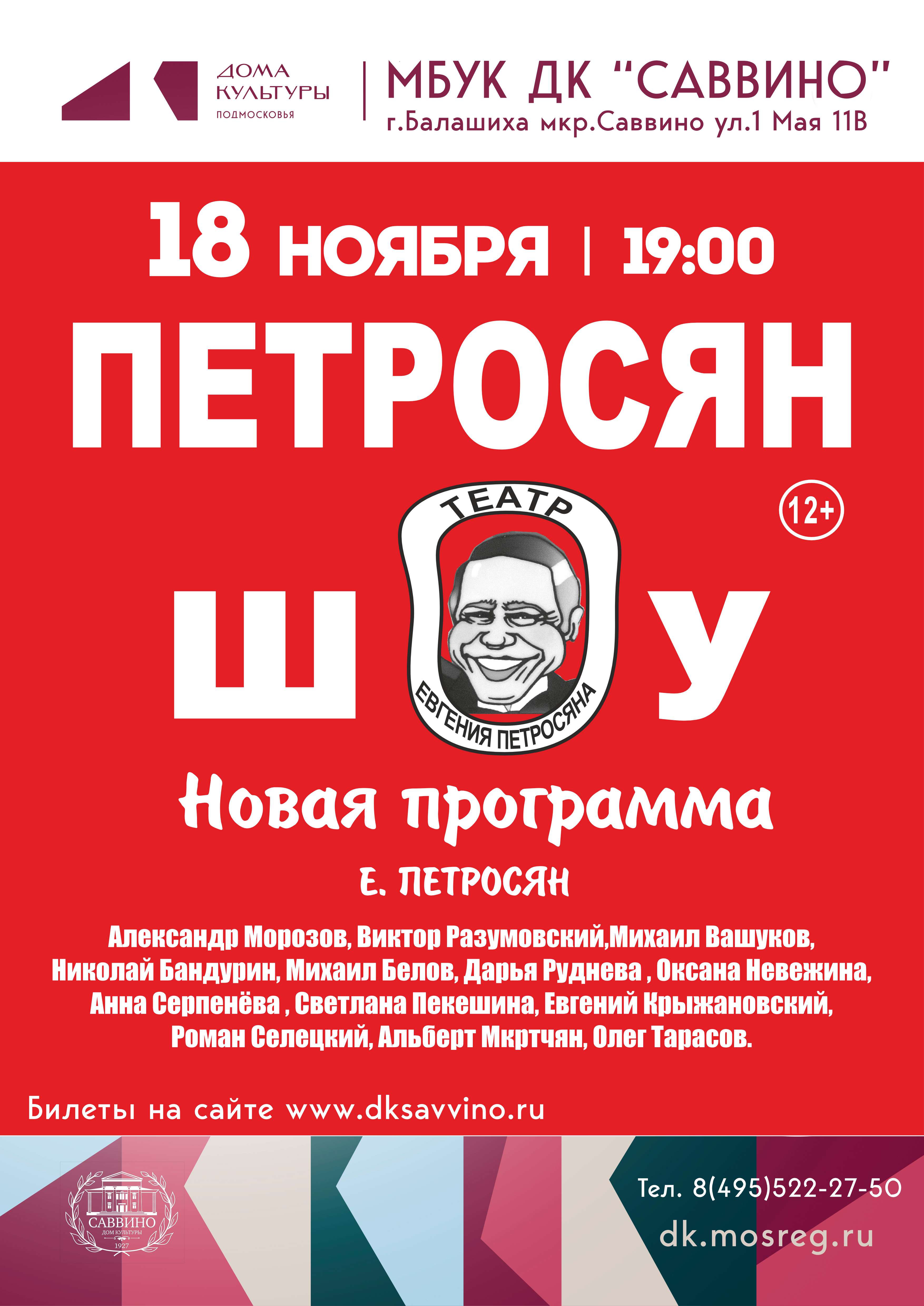 18 ноября в 19.00 Евгений Петросян представляет НОВУЮ программу "Петросян ШОУ"!
