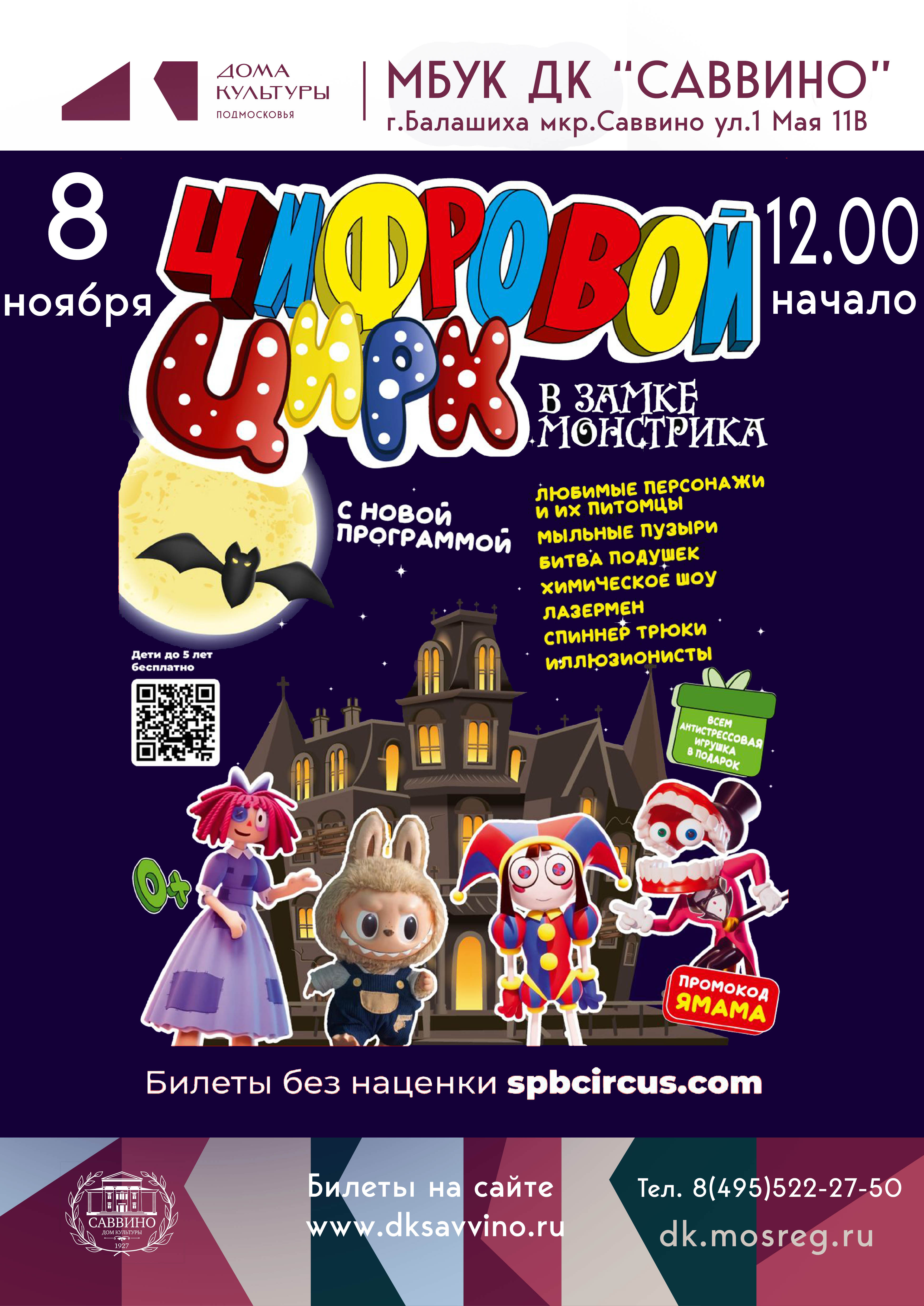 Вас ждёт новая встреча с героями Цифрового цирка. Героям предстоит посетить старое поместье . Нужно пройти много комнат, в которых они встретят обитателей цирка и их питомцев , пройдут через туман и завесу мыльных пузырей. Их ждут невероятные испытания, для поиска главного жителя замка - монстрика Лабубу, закрытого от света в комнате из подушек. Все это станет возможным только благодаря вам - нашим зрителям. Ваше участие поможет героям цифрового цирка. Представление сочетает в себе элементы фантазии, музыки, спецэффектов. После шоу каждого ждёт подарок- игрушка антистресс.