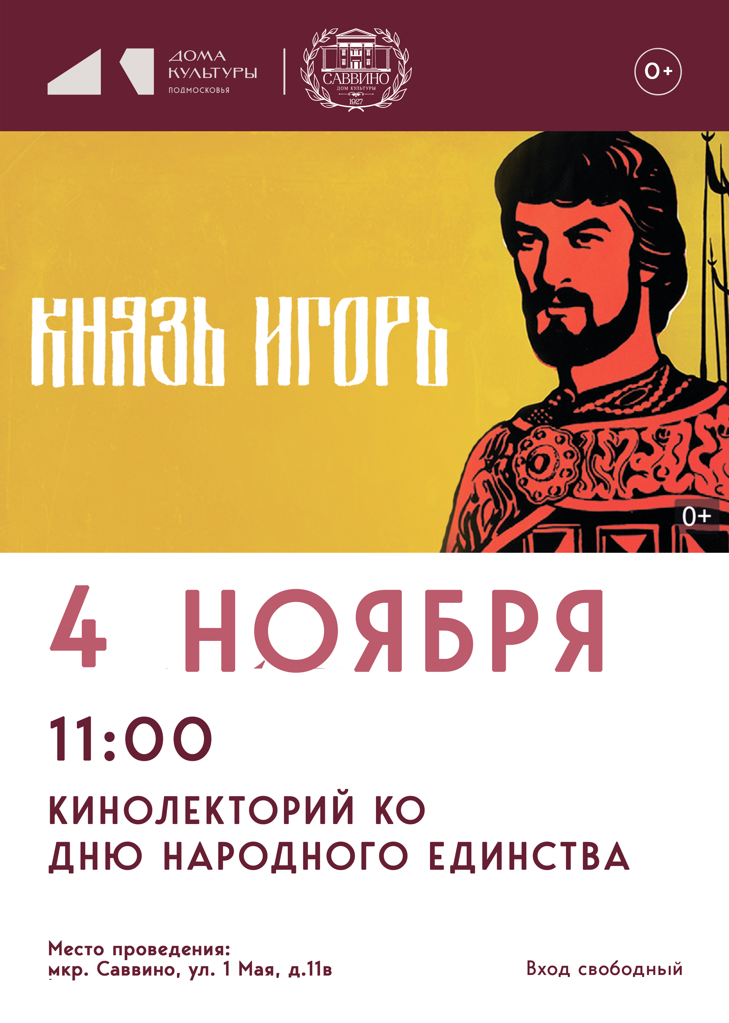 4 ноября 11 .00 Кинопоказ посвященный празднику День народного единства