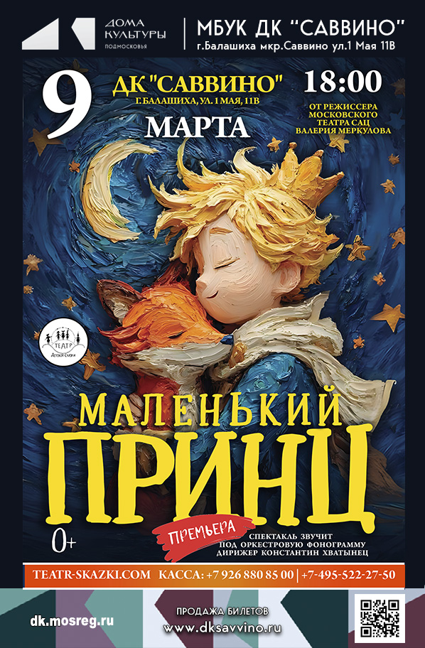«Маленький принц» – это не просто спектакль, это захватывающее путешествие, которое станет незабываемым для всей семьи. По мотивам бессмертной сказки Антуана де Сент-Экзюпери, это постановка, которая приглашает вас посмотреть на мир с точки зрения ребенка, где каждый момент наполнен магией и мудростью.