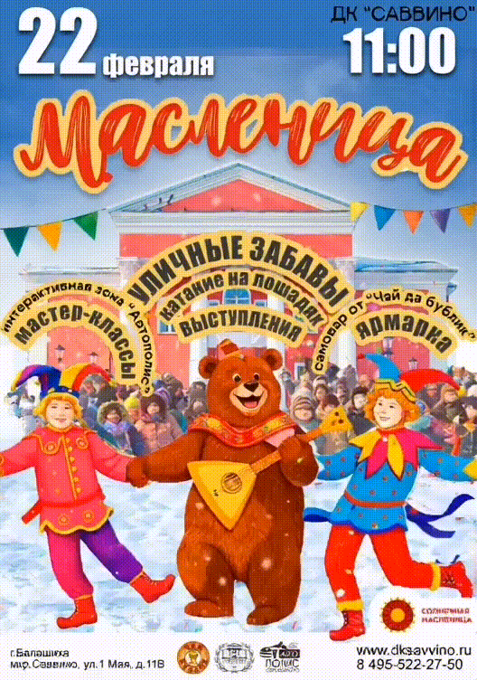 приглашаем вас окунуться в атмосферу веселья, традиций и радости на Масленицу в ДК «Саввино»!